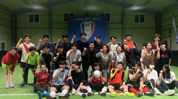 ▶네, 맞습니다. 다 나눠서 어쨌든 저희 목적은 운동을 하면서 친목을 다지는 게 저희의 목적이기 때문에 그렇게 별도로 팀을 나누지 않고 다 같이 함께 풋살하고 있습니다.