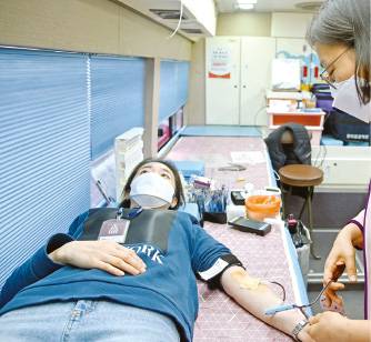 | ▲ 17일 서울 명동 가톨릭회관 앞마당에 마련된 헌혈버스 안에서 한 서울대교구 신자가 헌혈을 하고 있다. |
