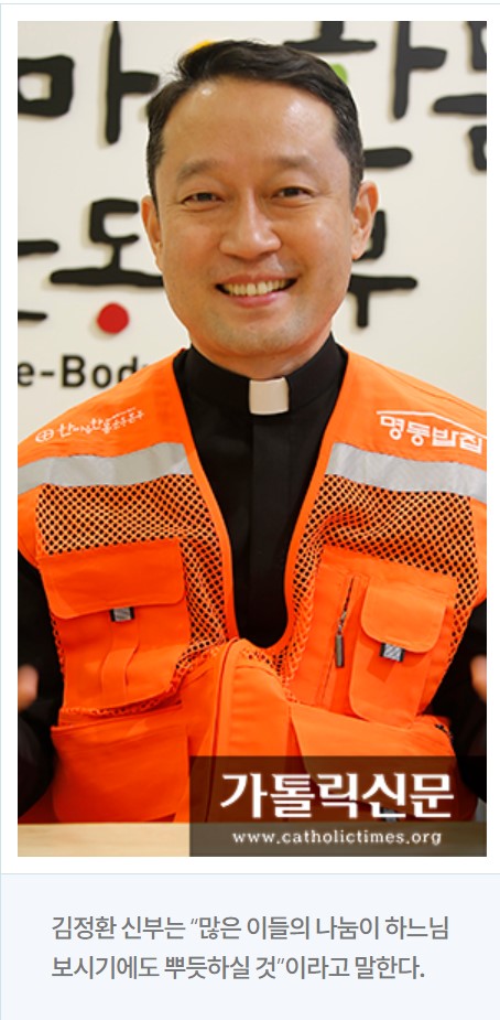 앞서 본부는 9월부터 12월까지 명동을 비롯해 을지로와 시청, 종각, 남대문 일대 거리로 나가 노숙인들에게 야간 간식 나눔 활동을 진행했다. 김 신부는 얼마 전 남대문 지하보도에서 생활하는 노숙인 할머니 한 분이 건넨 인사말이 아직도 기억에 남는다고 말했다.